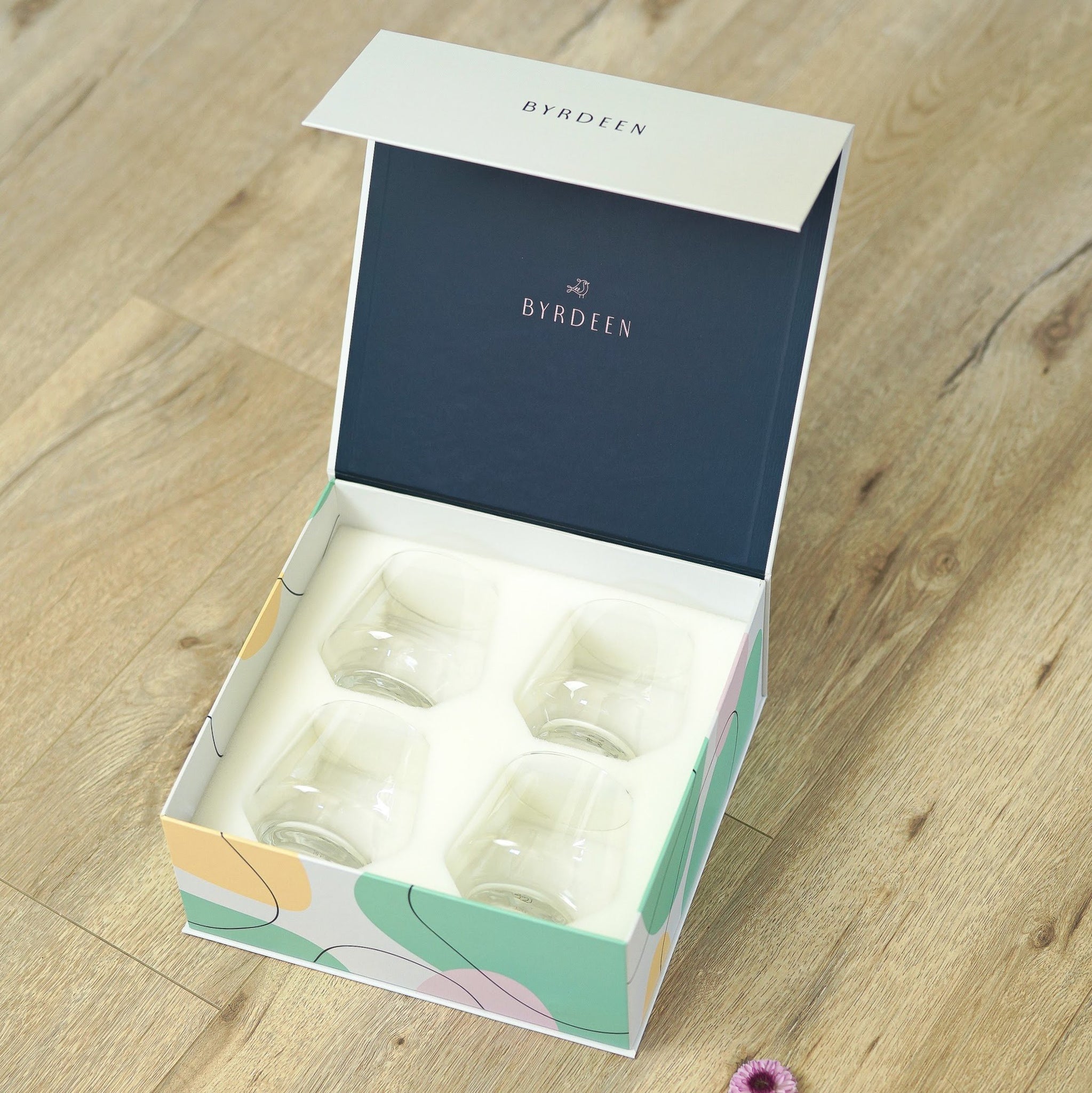 We are Cascada Stemless Glasses, named after the beauty of Costa Rica’s waterfalls. Yes we know, we’re just clear. But sometimes the simplest of things are the most beautiful! We are refined, elegant, and crystal clear. Literally, because we’re made of crystal. We began as hot globs in a fiery furnace, and were carefully molded, spun, and shaped by the hands of humans into what we are today. We come as a set of four in beautifully designed luxury packaging.