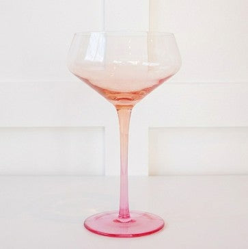 Hola! We are Mezclada Coupe Glasses, which means ‘mixed’ in Spanish. We are a mix of each of the colors in the Costarriqueña Collection: Flora, Quetzal, Cielo, and Rio. With our distinctive colors you will know exactly which of us is yours, and we'll be locatable from across the room. It’s a win-win. Well actually, a win-win-win-win because there are four of us. We come carefully protected in luxurious packaging, ready to make your acquaintance. Cheers!