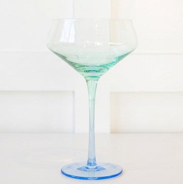 Oh hey! We’re Rio Coupe Glasses. We were created to reflect the beauty of Costa Rica’s Rio Celeste river and surrounding foliage. Our blues and greens capture the essence of this stunning river, and add a little story to your sipping. Just try not to take us hiking to the Rio Celeste, as we’re not quite as outdoorsy as our namesake. That’s because each of us are made by hand, of elegant handblown crystal. We are a fabulous family of four, arriving to you in nothing less than the finest of packaging.